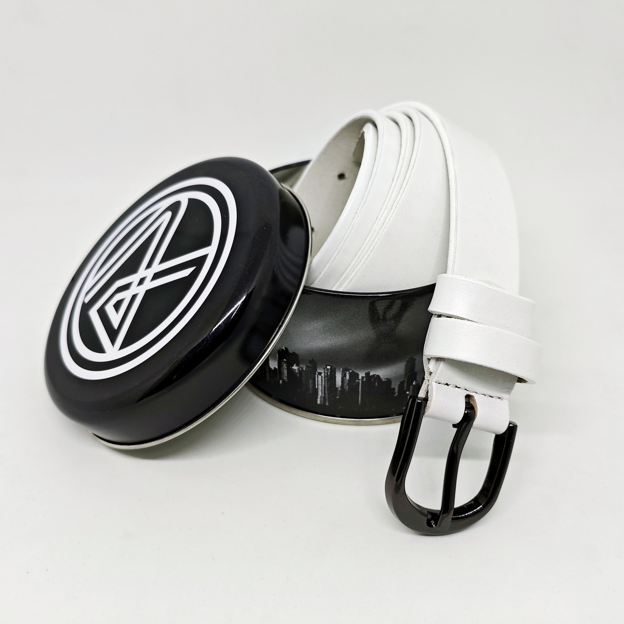 Ремень женский кожаный 2,5см в жестяной баночке (белый)