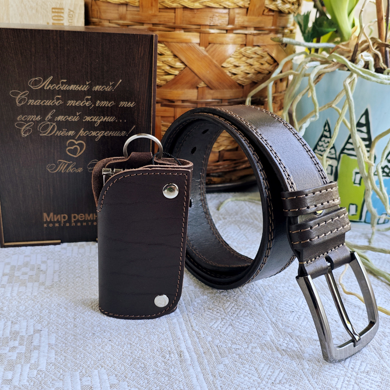 Набор подарочный: ремень 4см + ключница