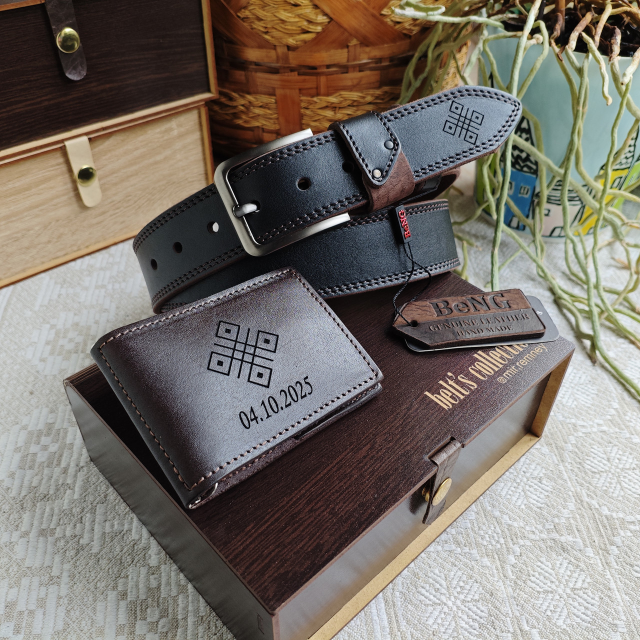 • Гравировка на коже или коробке (инициалы, дата, лого)