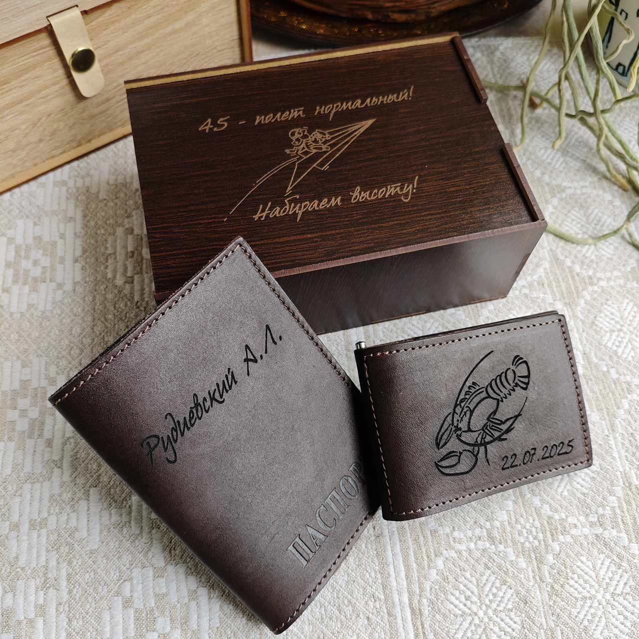 Подарочный набор: кошелёк зажим + обложка (паспорт или автодокументы)