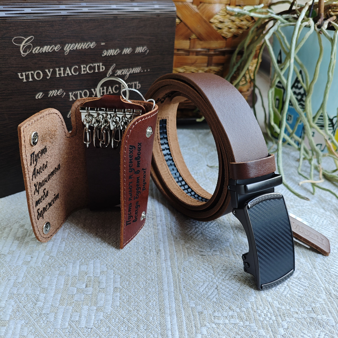 Подарочный набор: ремень-автомат 3,5см + ключница